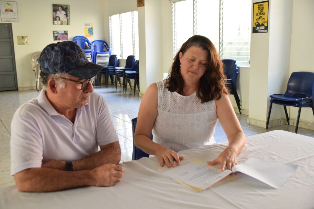 Signing of the Memorandum of Understanding with our partner in El Salvador, ADES Santa Marta. Alfredo Leiva, ADES Member (left); Deborah Payne, CoCoDA Executive Director (right).