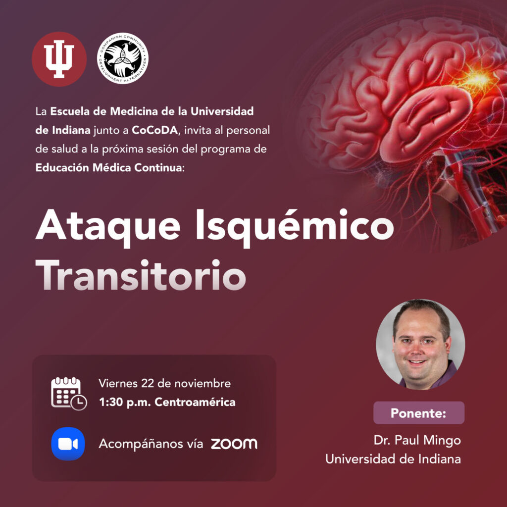 La Escuela de Medicina de la Universidad de Indiana en colaboración con CoCoDA, hacen la invitación al personal de salud e interesados a la próxima sesión del programa de Educación Médica Continua (CME)